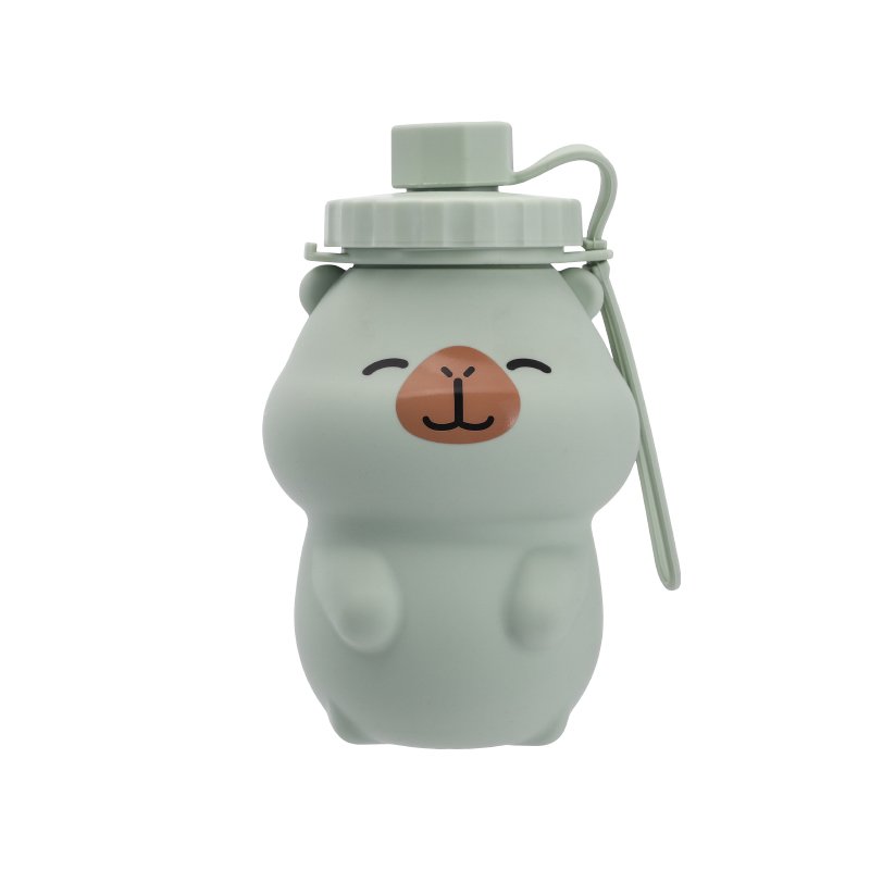 تصميم كابيبارا الرائع : شكل كابيبارا لطيف كرتوني مع وجه مبتسم يجعل مياه الشرب ممتعة وجذابة - مثالية كزجاجة سيليكون فريدة للأطفال والكبار.